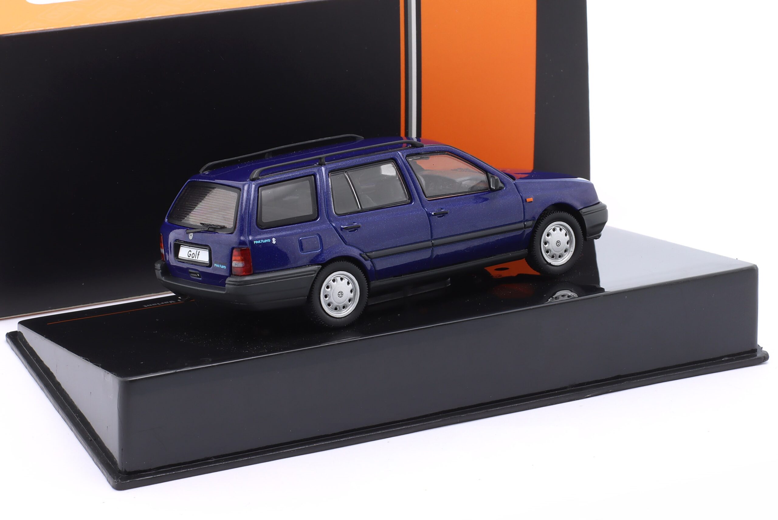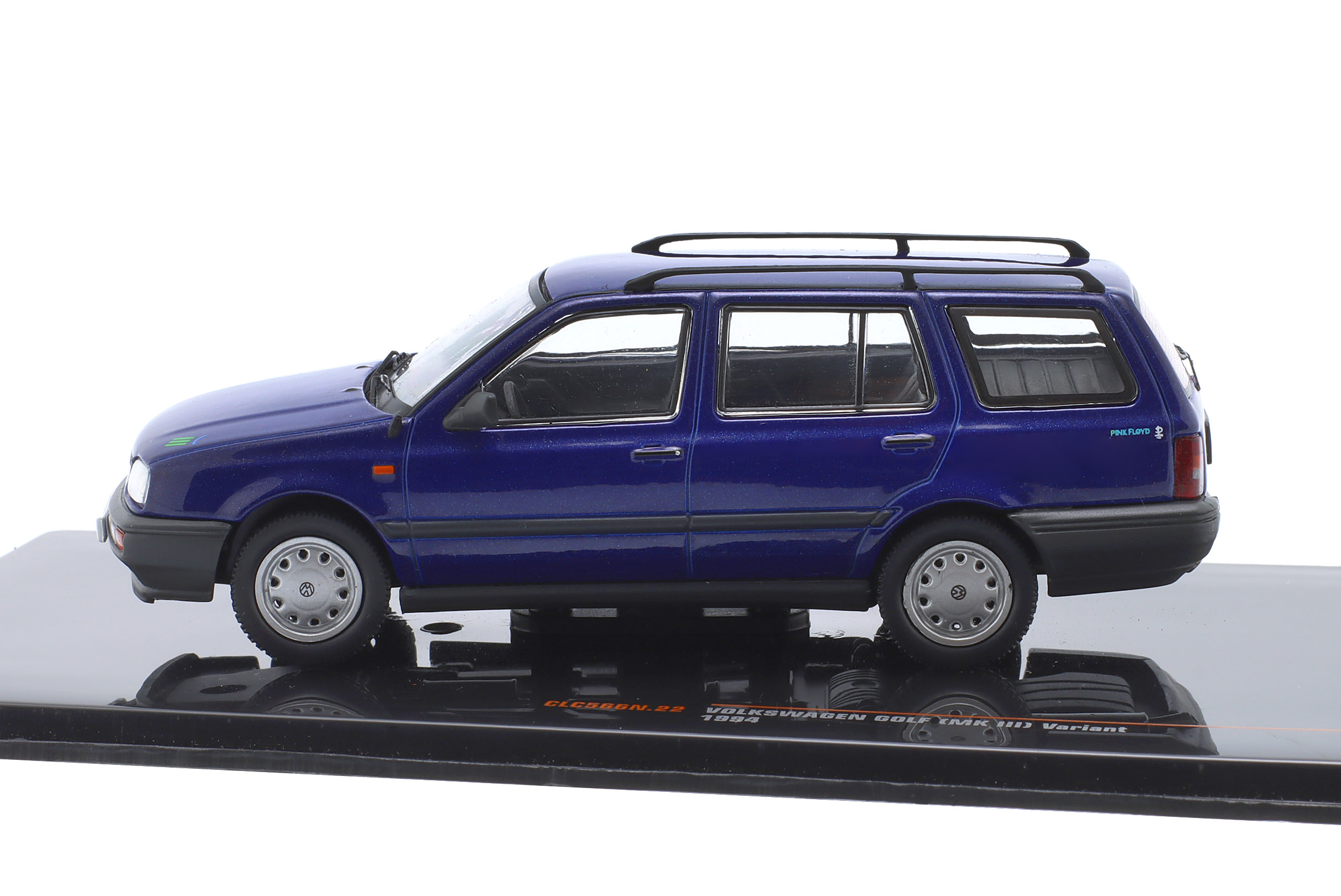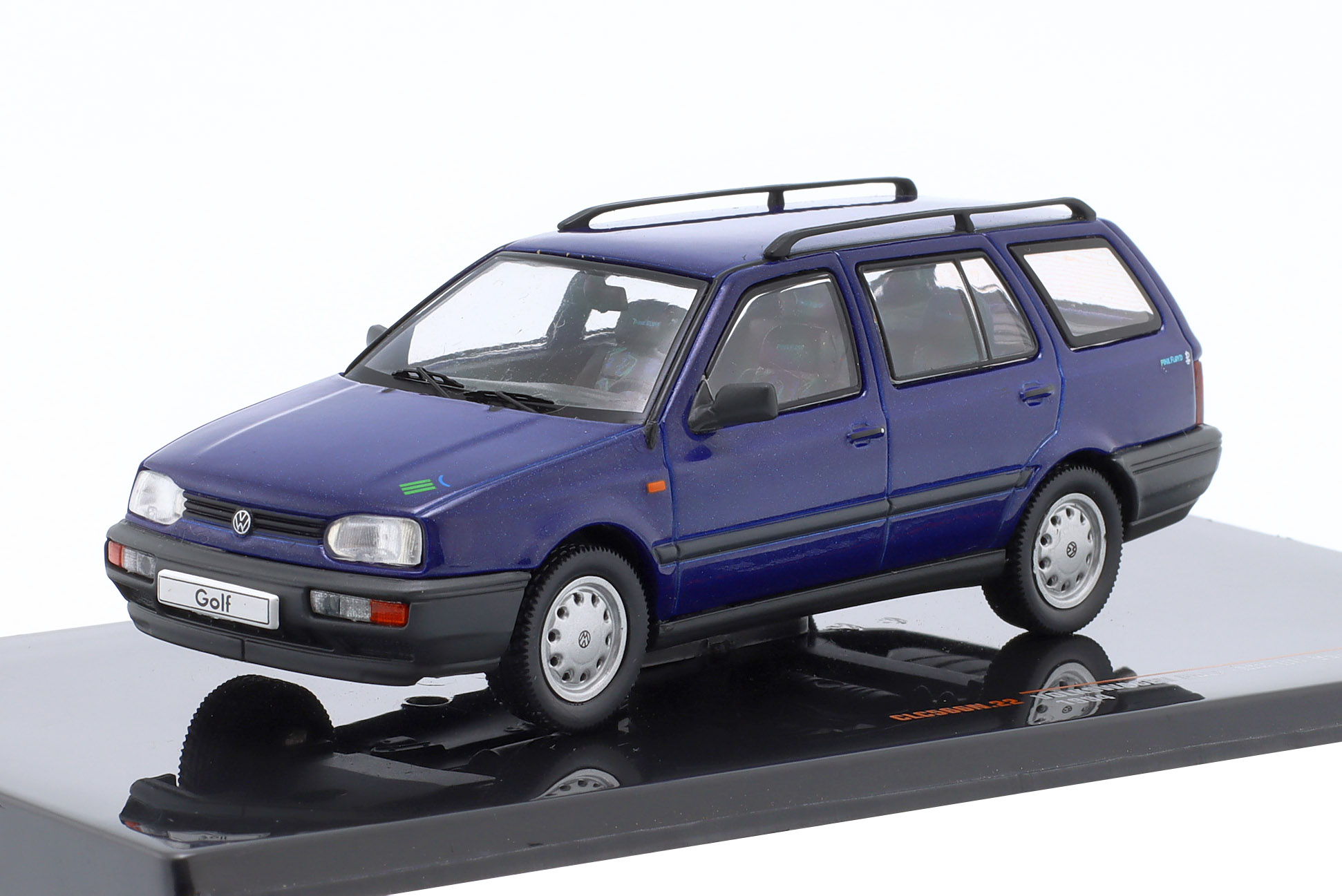 Kolekcjonerski model metalowy z elementami plastikowymi samochodu VOLKSWAGEN GOLF III Variant z roku 1994 w kolorze Niebieski metallic.Model nie posiada otwieranych elementów.Model na plastikowej podstawce,zapakowany w kartonowe pudełko z witrynką.