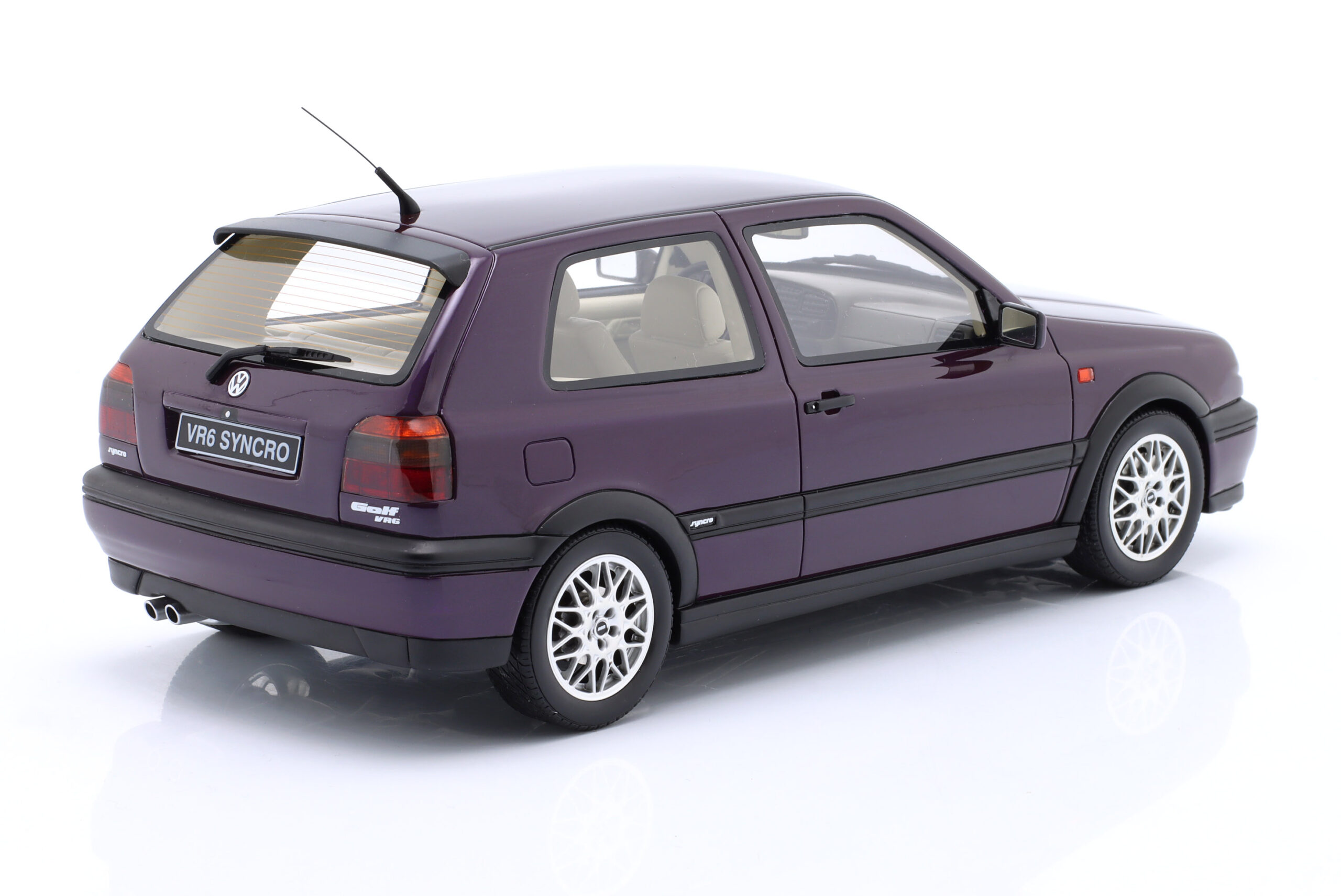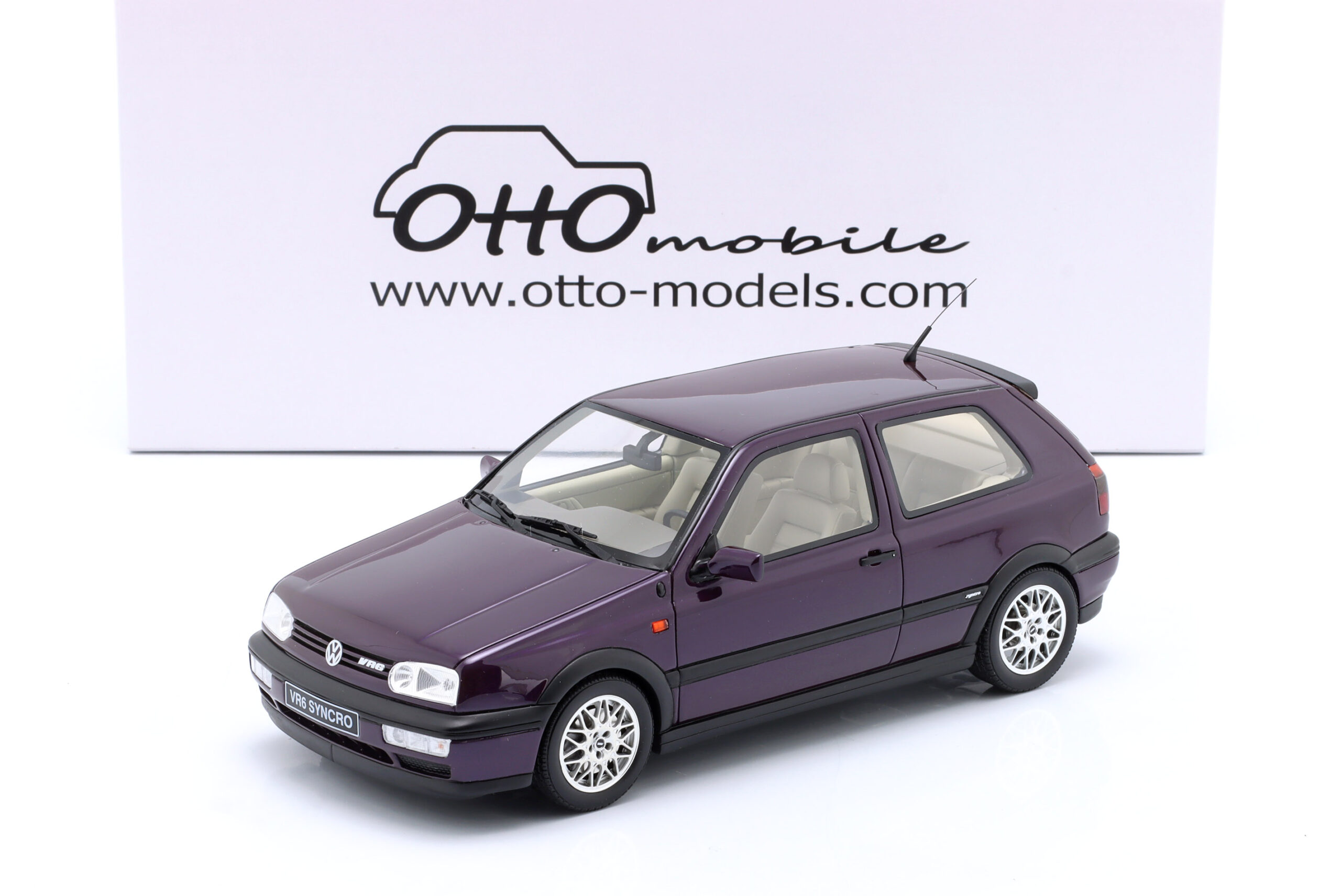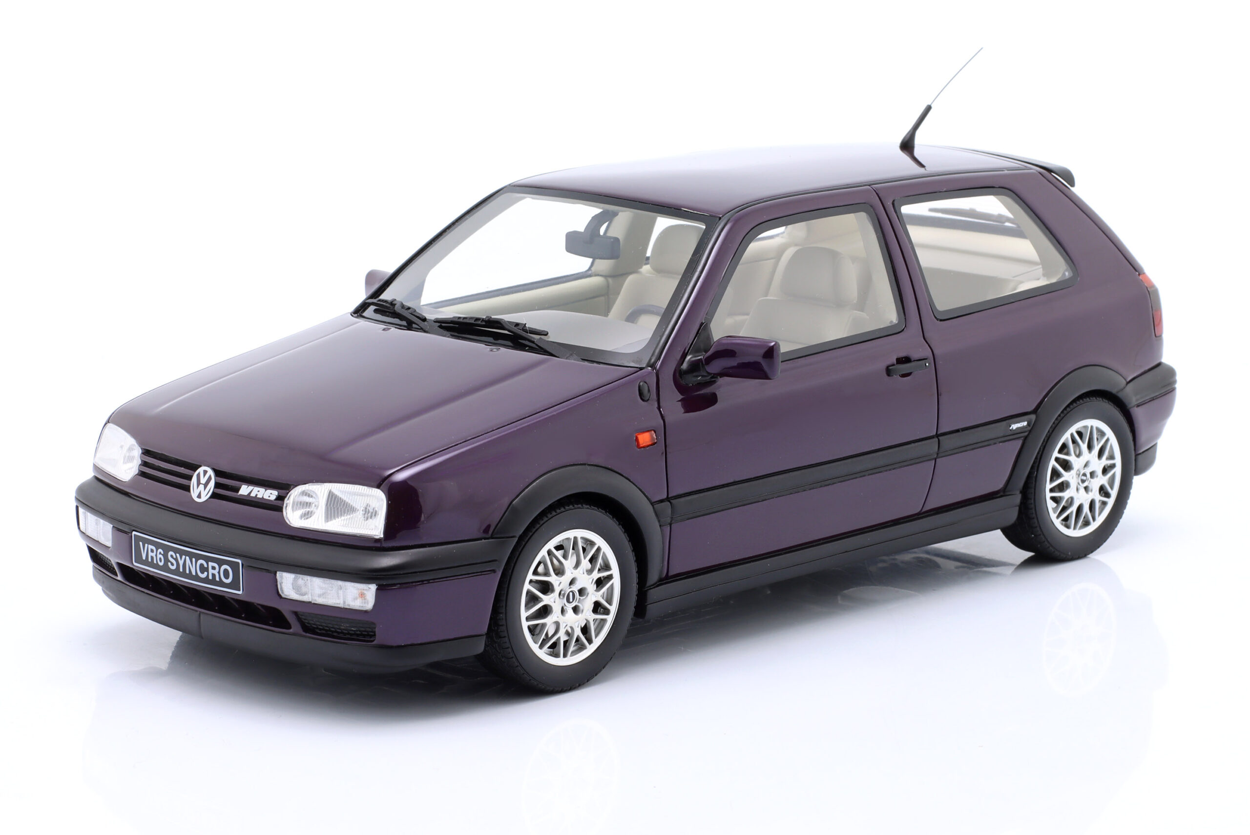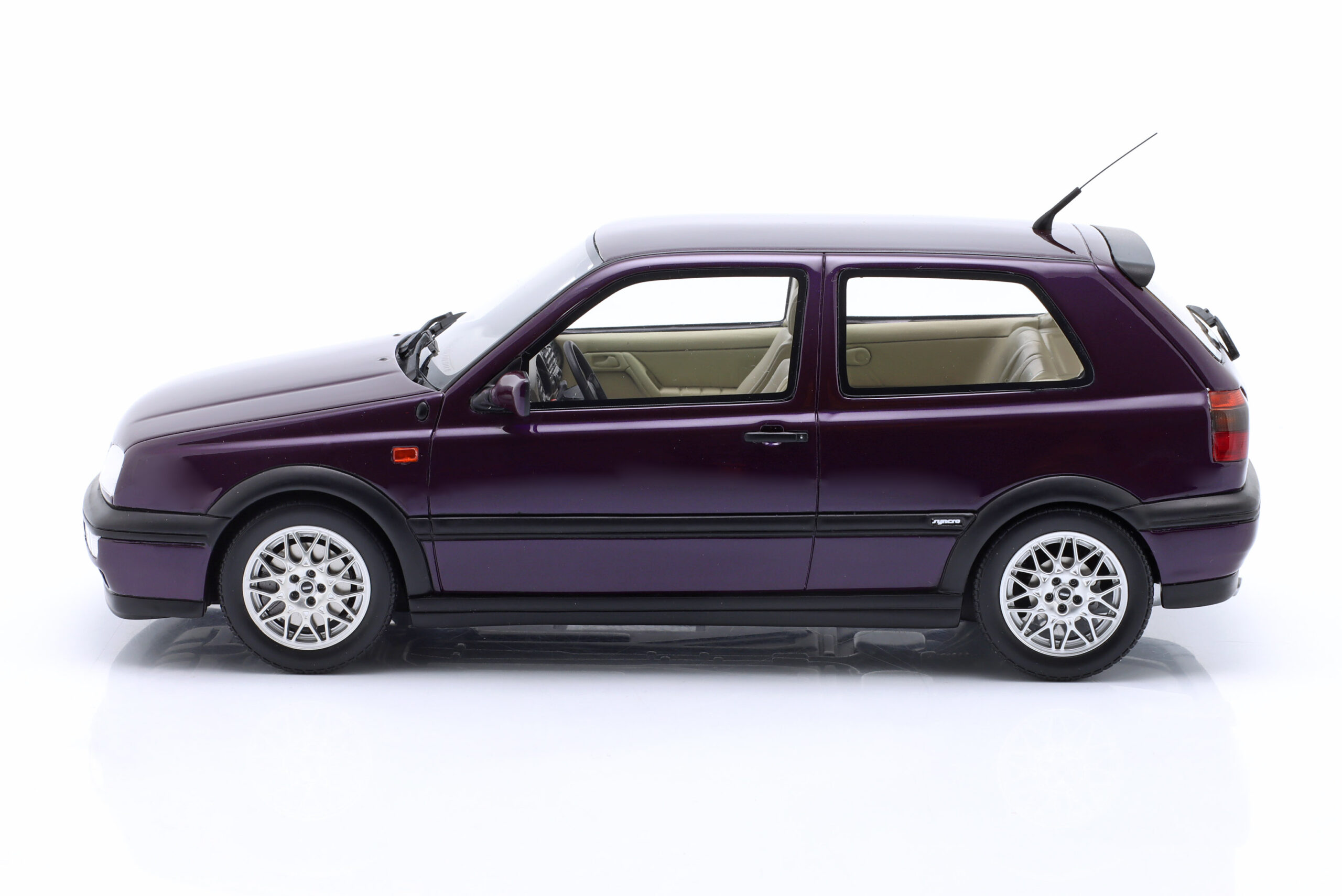 Kolekcjonerski model wykonany z żywicy samochodu VOLKSWAGEN GOLF III VR 6 SYNCRO z roku 1995 w kolorze Fioletowym.Model nie posiada otwieranych elementów.Edycja limitowana tylko 2500 sztuk.