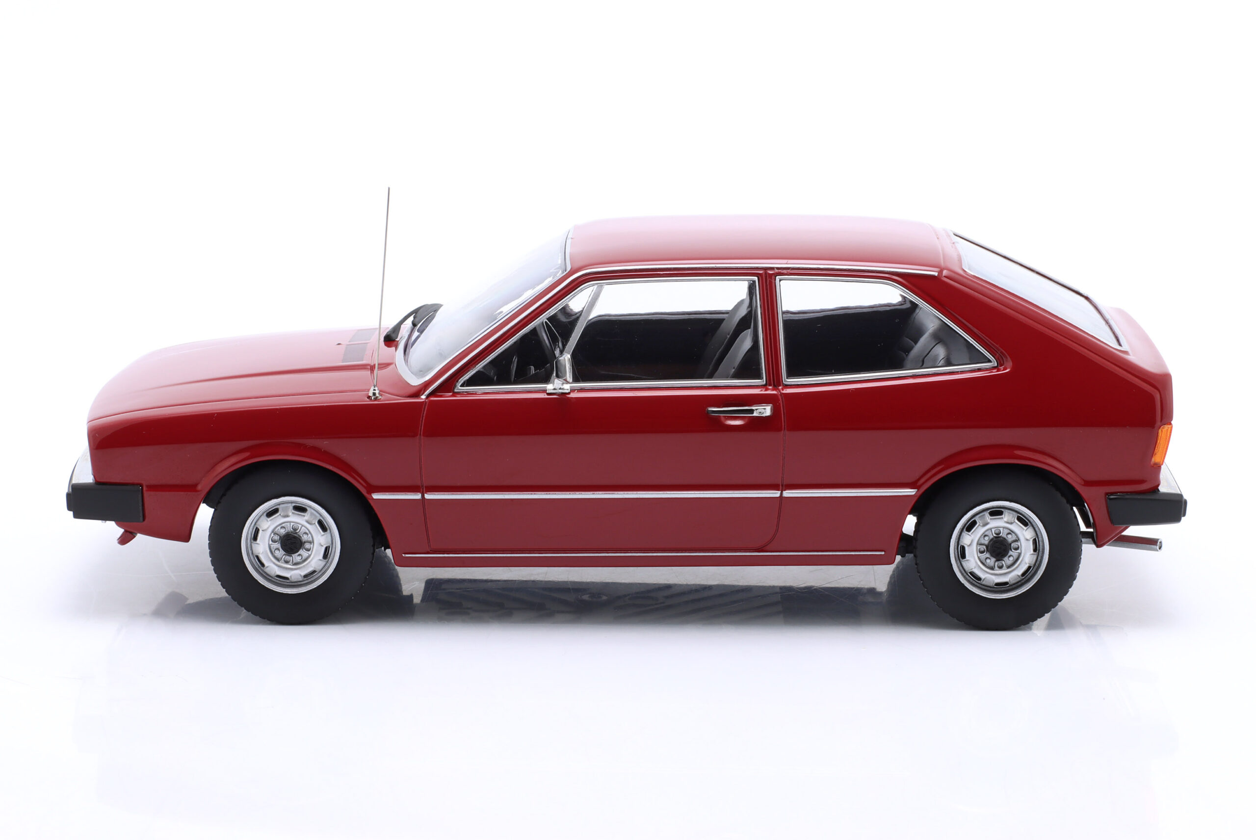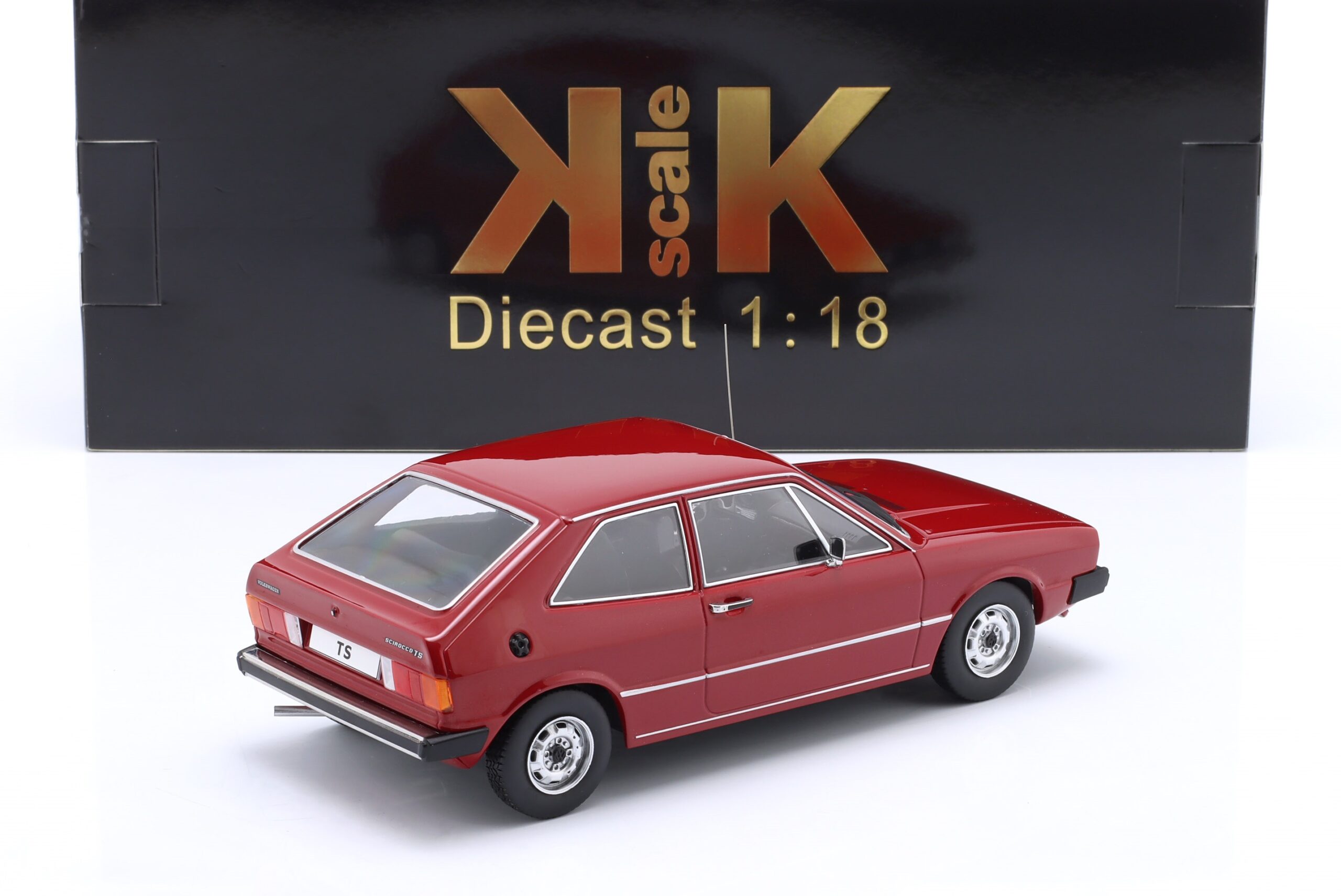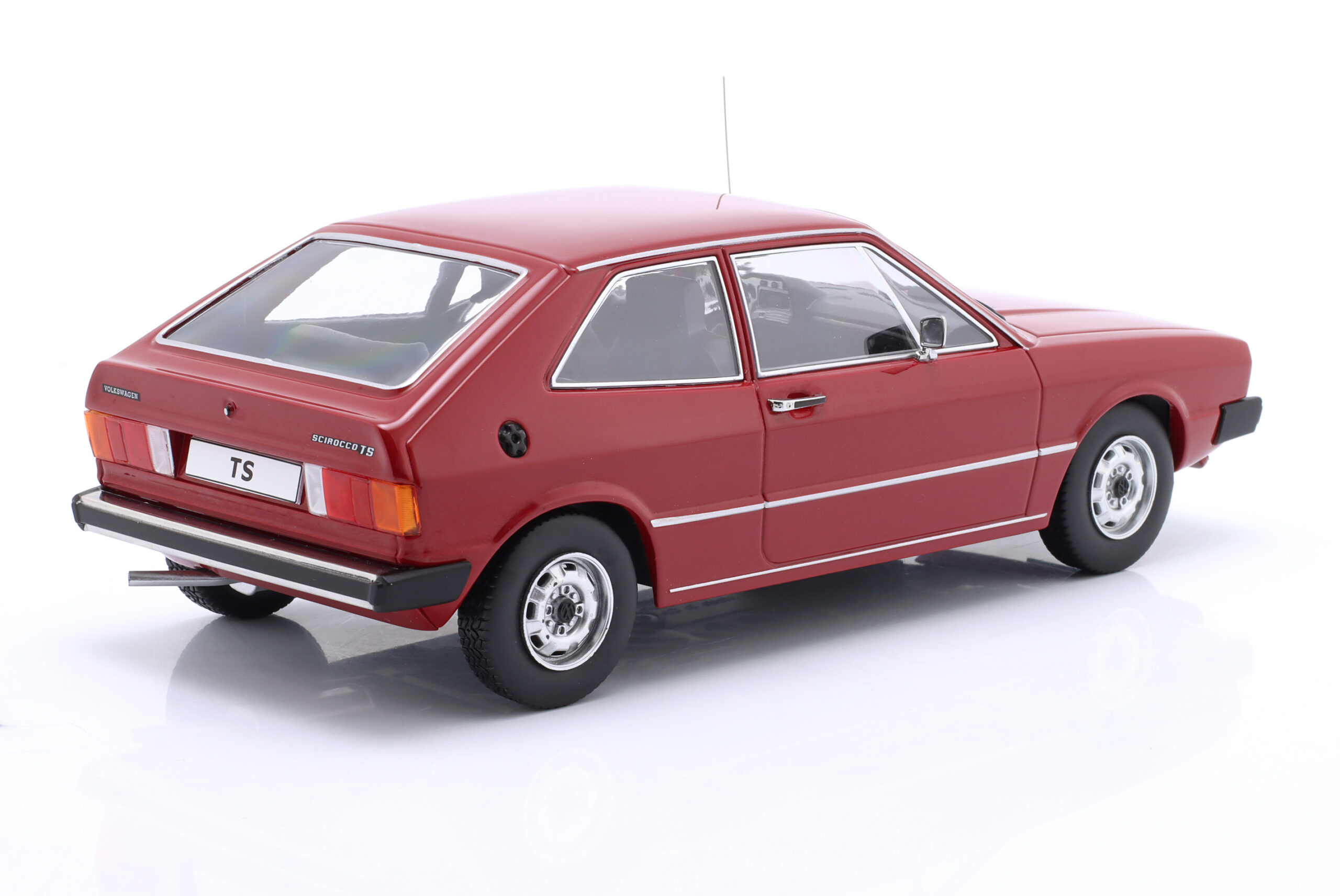Kolekcjonerski model metalowy z elementami plastikowymi samochodu VOLKSWAGEN SCIROCCO TS MkI z roku 1976 w kolorze Ciemnoczerwonym.Model nie posiada otwieranych elementów.
