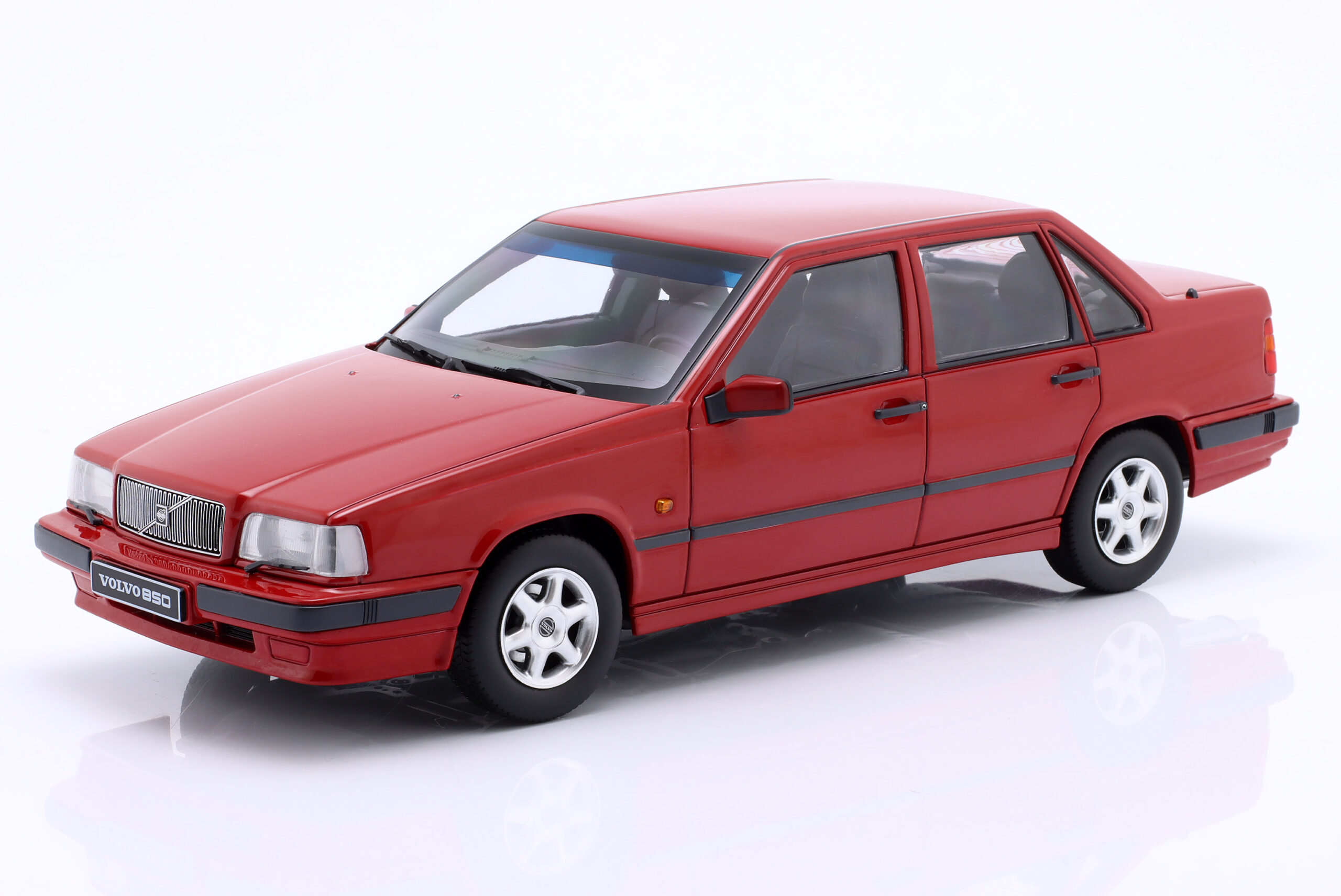 Kolekcjonerski model metalowy z elementami plastikowymi samochodu VOLVO 850 z roku 1993 w kolorze Czerwonym.