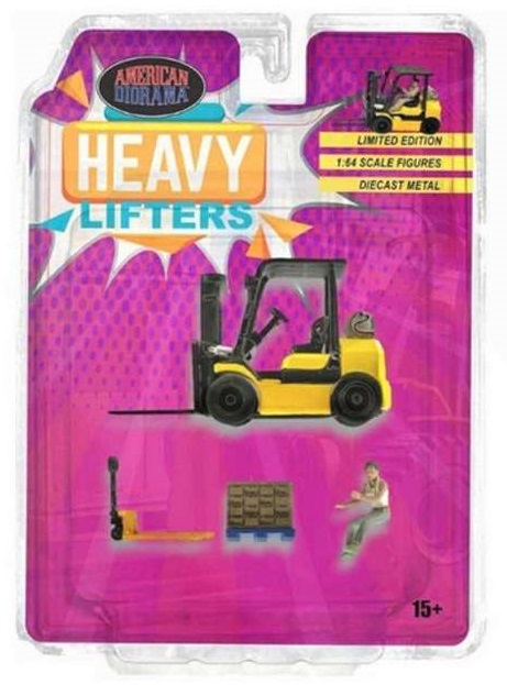 Zestaw zawiera model wózka widłowego,paleciaka,towar na palecie oraz figurkę operatora wózka widłowego. Całość zapakowana w blister.