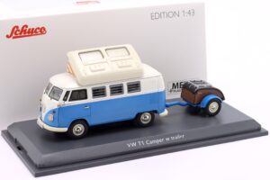 Ulubione Ulubione VOLKSWAGEN T1 Camper WESTFALIA 1960 + Trailer Blue/White Producent Schuco Skala 1:43 Cena 249,00 zł Brak w magazynie Kup Ulubione Ulubione